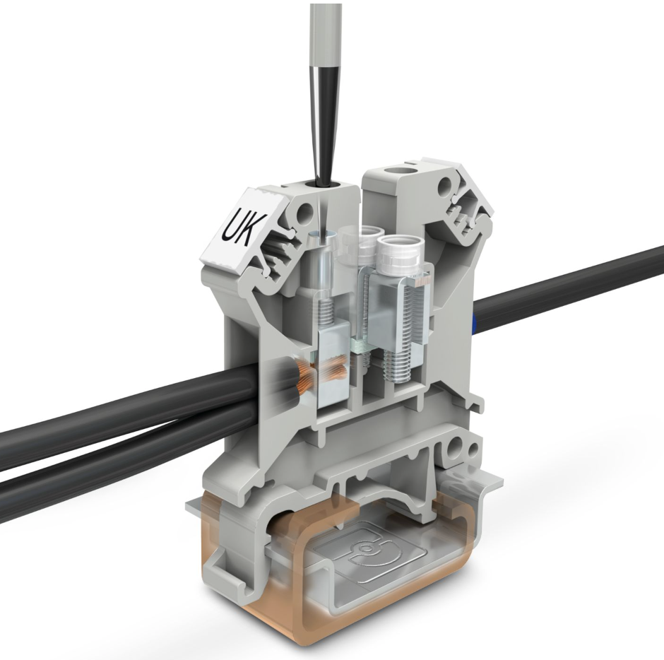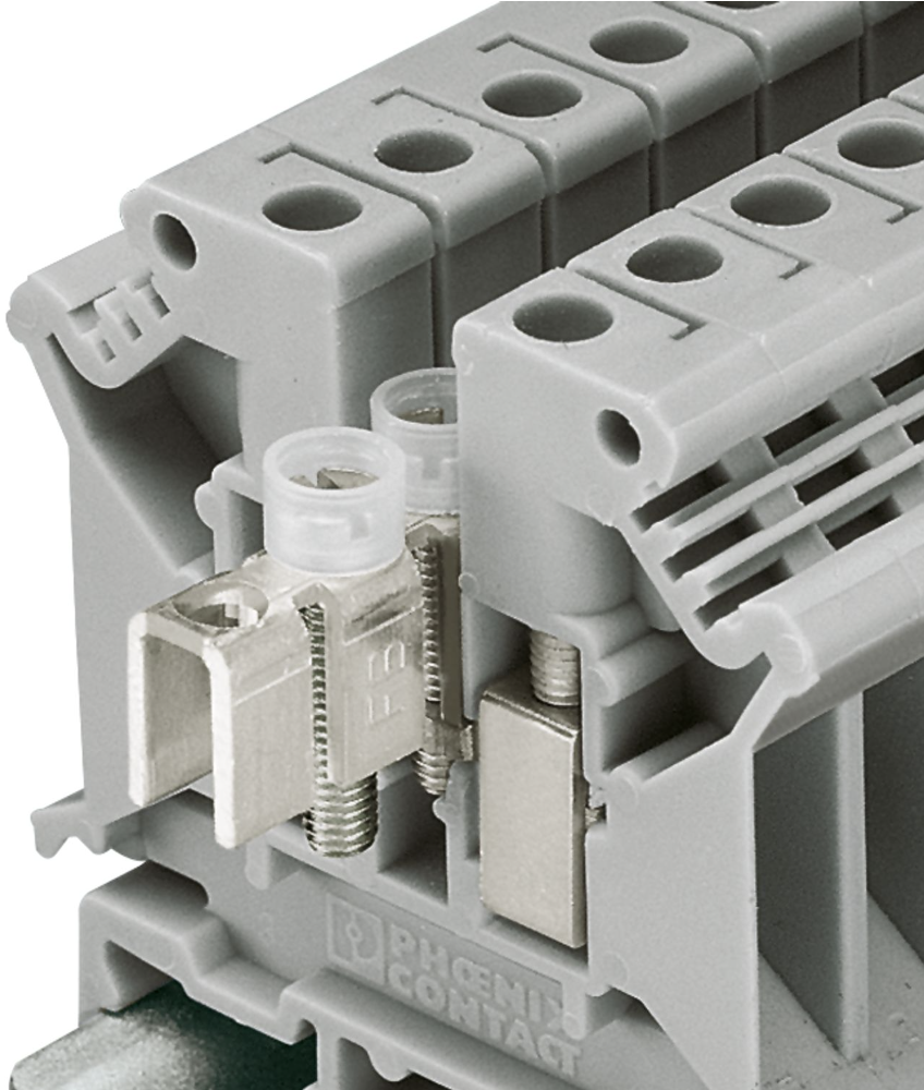 Borne de paso, tensión nominal: 800 V, corriente nominal: 32 A, número de conexiones: 2, tipo de conexión: Conexión por tornillo, Sección de dimensionamiento: 4 mm2, sección: 0,2 mm2 – 6 mm2, clase de montaje: NS 35/7,5, NS 35/15, NS 32, color: gris